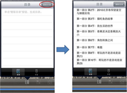 Apabi Reader還可以對TXT進(jìn)行智能目錄提取,用戶(hù)只需點(diǎn)擊“提取目錄”按鈕,一般可以在幾秒鐘內提取TXT文檔的目錄信息,并可以在不需要時(shí)清除該目錄。