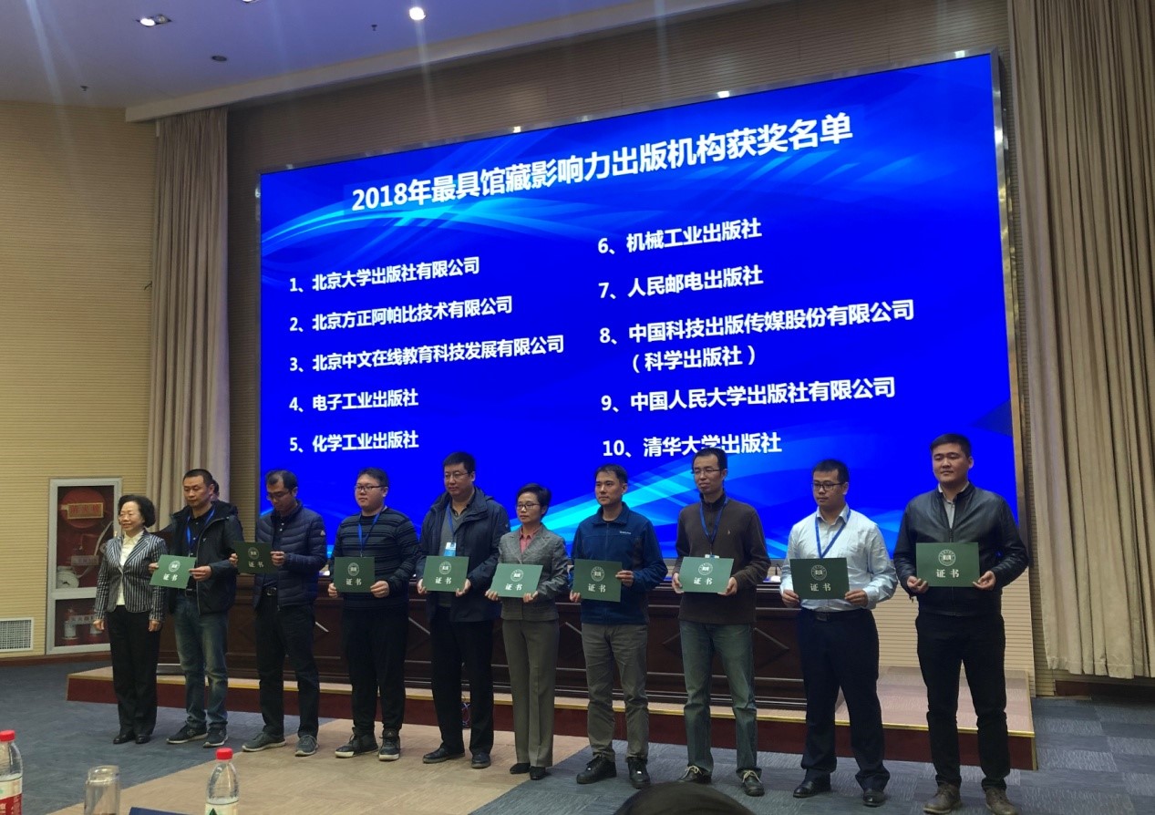 會(huì )議期間,北京方正阿帕比技術(shù)有限公司獲得了由中國圖書(shū)館學(xué)會(huì )等5家權威單位主辦的“最具館藏影響力出版機構”獎項,是繼2017年首次獲得此獎項后,再次獲此殊榮。這不僅肯定了方正阿帕比在館藏領(lǐng)域的影響力,更是認可了方正阿帕比在數字出版領(lǐng)域做出的卓越貢獻。