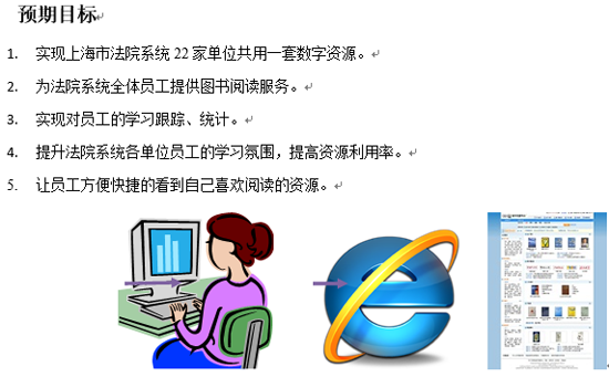 上海市高級人民法院是上海法院系統內22家單位的領(lǐng)導單位,至2008年以來(lái)上海高法開(kāi)始選用方正阿帕比數字資源解決方案,本著(zhù)開(kāi)源節流的原則推動(dòng)數字化資源建設。經(jīng)過(guò)四年的建設方正阿帕比數字資源種類(lèi)豐富、版權徹底、資源質(zhì)量高更新快、擁有專(zhuān)業(yè)的資源個(gè)性化應用平臺等特點(diǎn)得到了上海高法的一致好評,因此上海高法成為了上海及全國各上下級單位的數字資源平臺建設的參觀(guān)考察點(diǎn)。2012年上海高法再次投入重金搭建上海法院文化網(wǎng),在此次文化網(wǎng)的搭建中上海高法已向上海22家法院系統內部單位提供資源共享服務(wù),阿帕比豐富的數字資源內容、個(gè)性化的應用平臺及先進(jìn)的版權保護技術(shù)也在上海法院界得到了認可。